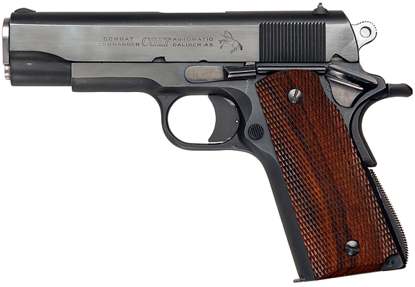 The Commander was introduced in 1951, making it fresh on the market and something that someone like Vincennes would choose over the .38 snubnose. Constructed of blued steel, the Commander had the same Browning-developed single-action short recoil system as a full size 1911, but it was 3/4 lbs. lighter and a half inch shorter. The compactness makes it a good choice for an urban policeman and the look makes it a good choice for a flashy policeman.
