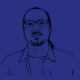 Mann wears a blue-and-white end-on-end cotton shirt, woven to present a solid light-blue. The shirt has a spread collar, front placket, box-pleated back, and rounded barrel cuffs with each single clear plastic button positioned higher toward the wrist rather than the center of the cuff.
